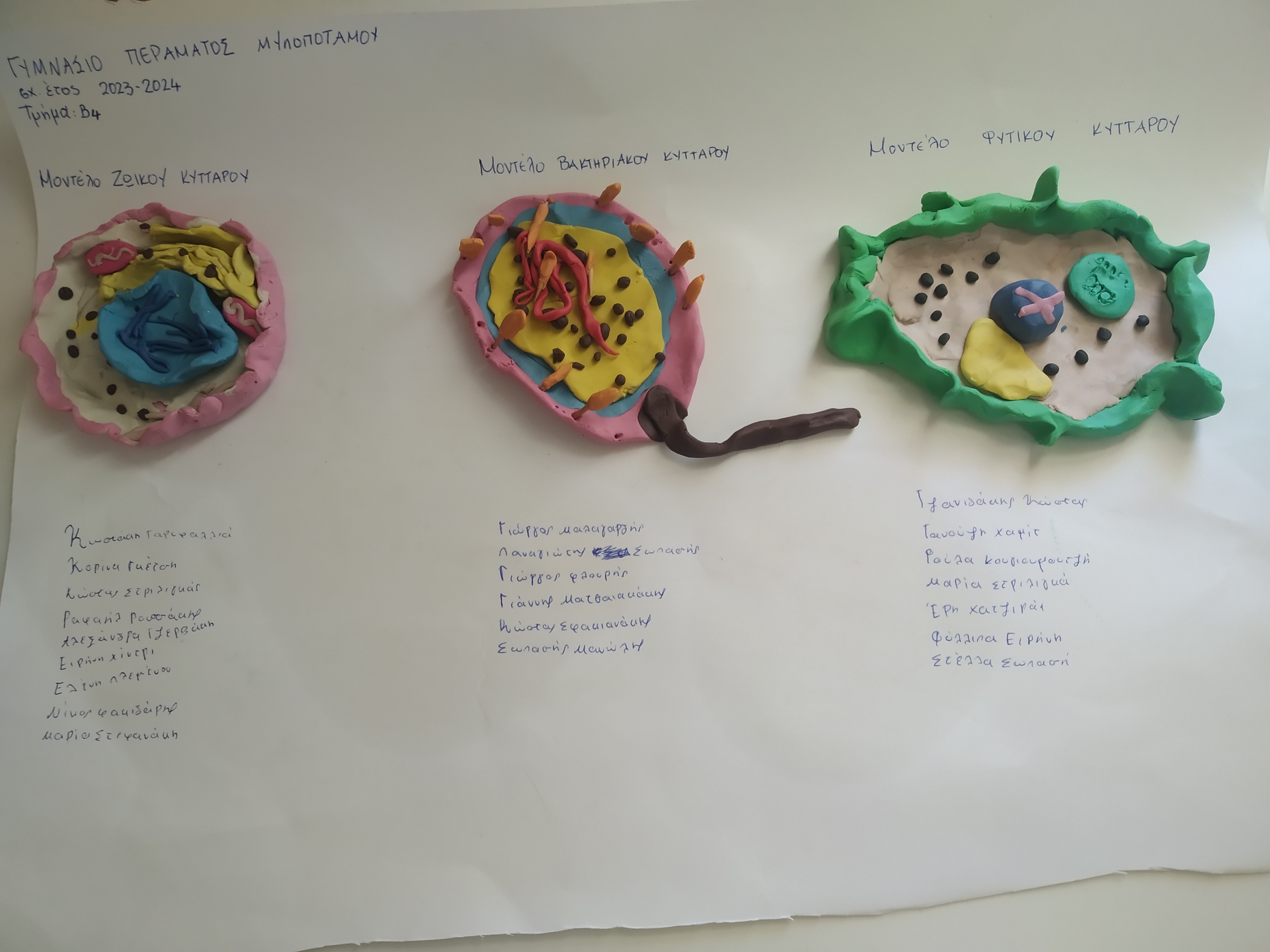 Βιολογία Β4: Μοντέλο φυτικού , ζωικού και προκαρυωτικού κυττάρου φτιαγμένο από πλαστελίνη