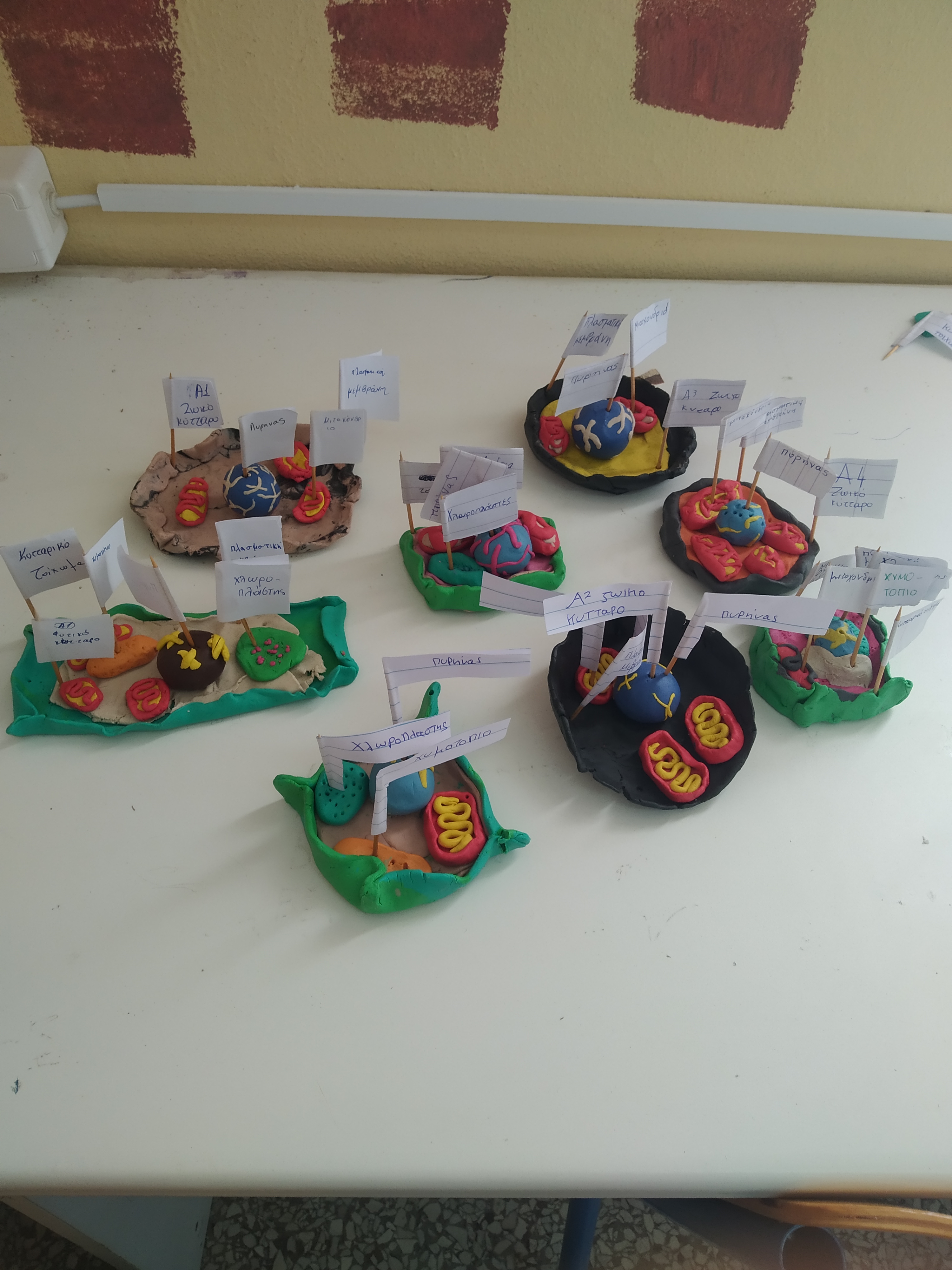 Μοντέλα φυτικών και ζωικών κυττάρων φτιαγμένα από πλαστελίνη από όλα τα τμήματα της Α' τάξης στο μάθημα της Βιολογίας.
