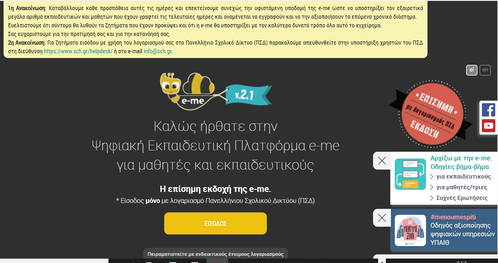 Οδηγίες βήμα βήμα για την είσοδό σας στην πλατφόρμα e-me