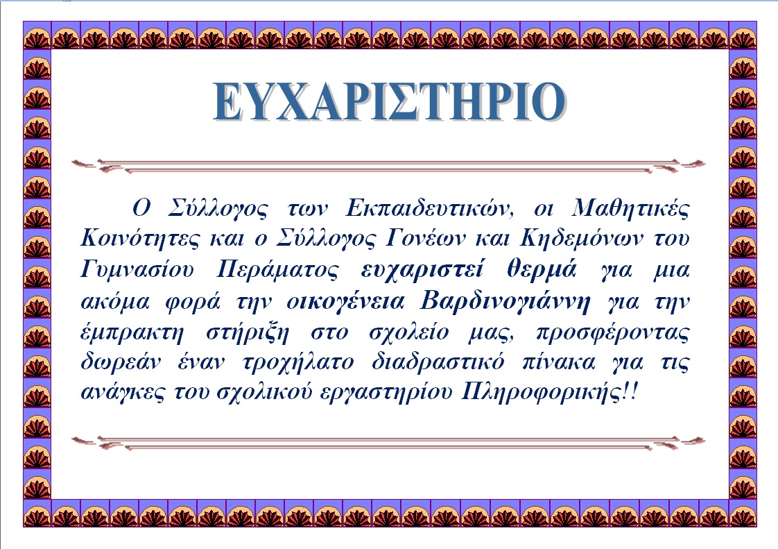 Βράβευση του Γυμνασίου Περάματος !!!
