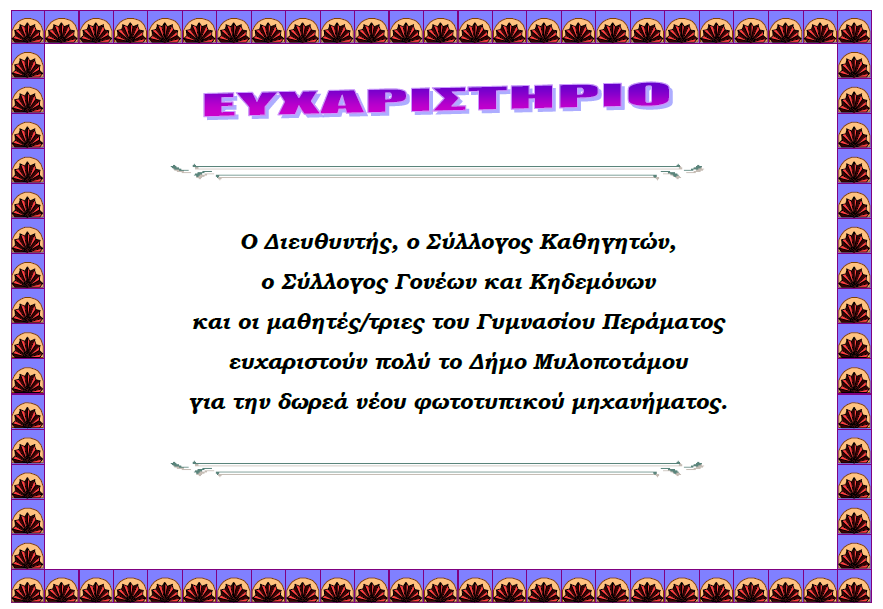 ΓΥΜΝΑΣΙΟ ΠΕΡΑΜΑΤΟΣ ΜΥΛΟΠΟΤΑΜΟΥ