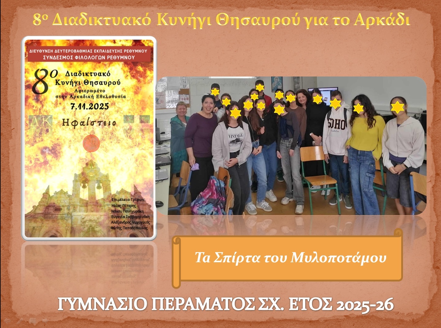 Το Γυμνάσιο Περάματος βραβεύτηκε για την επιτυχή συμμετοχή του στο διαδικτυακό κυνήγι θησαυρού για το Αρκάδι. Για το γεγονός ότι για τρίτη συνεχή χρονιά τερμάτισε 1ο από όλα τα σχολεία της επαρχίας του Ρεθύμνου βρίσκοντας μάλιστα και τον θησαυρό!!