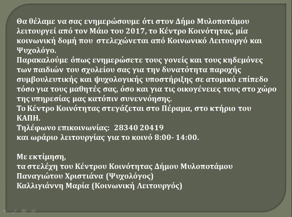 Αγαπητοί γονείς , κηδεμόνες.