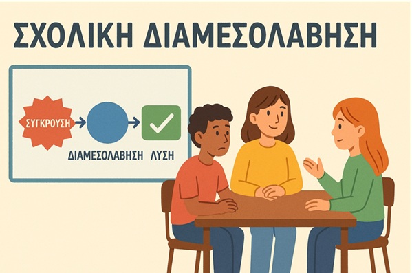 Μαθητές που έχουν εκπαιδευτεί ειδικά για τον ρόλο του διαμεσολαβητή υποστηρίζουν τους συμμαθητές τους μέσα από διάλογο, κατανόηση και συνεργασία, με στόχο την εύρεση λύσεων που ικανοποιούν και τις δύο πλευρές.