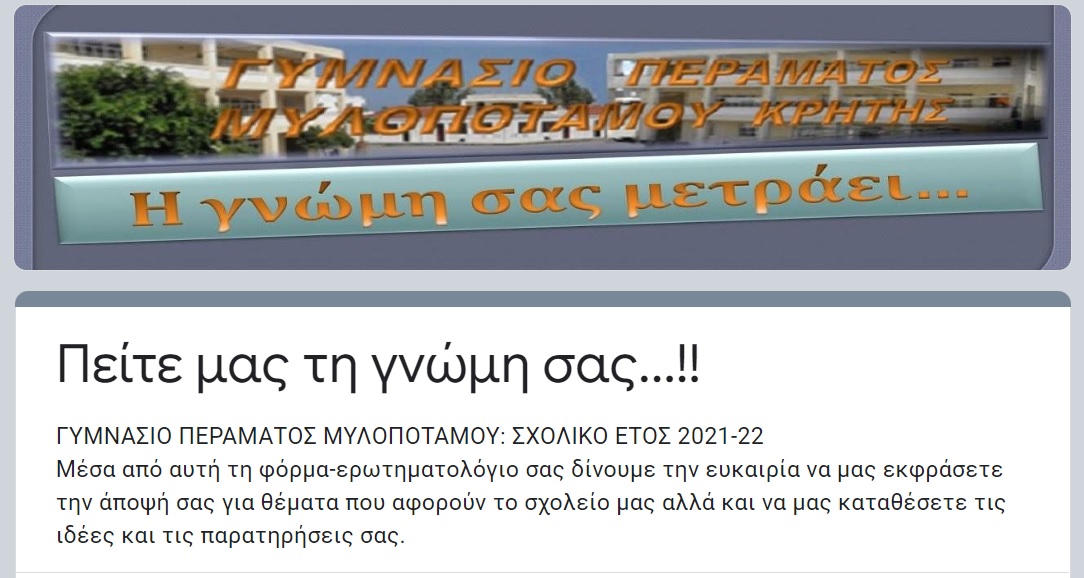 Δράσεις 2021-22 - Πείτε μας τη γνώμη σας
