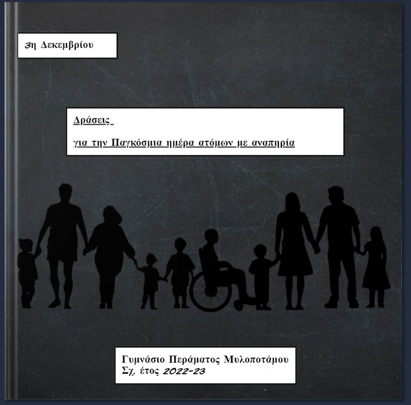 Κάντε κλικ στην παραπάνω εικόνα για να διαβάσετε το βιβλίο που φτιάξαμε για την Παγκόσμια Ημέρα Ατόμων με Αναπηρία όπως γιορτάστηκε φέτος στο σχολείο μας.