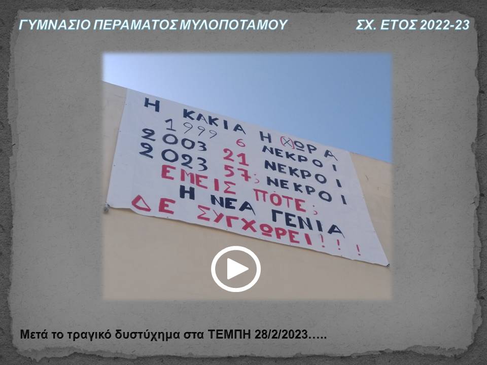 Κάντε κλικ στην παρακάτω εικόνα για να δείτε ένα συνοπτικό βίντεο με τις δράσεις που έγιναν στο σχολείο μας κατά το σχολικό έτος 2022-23.