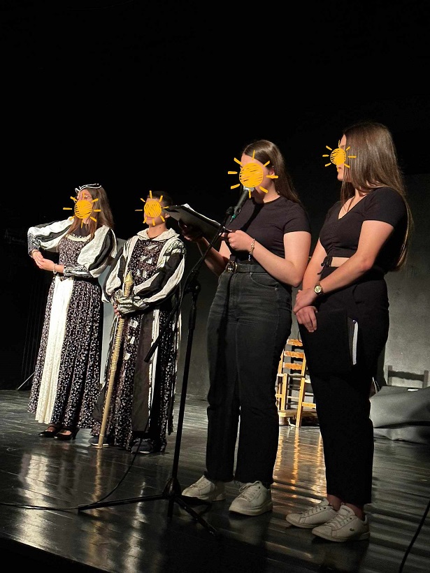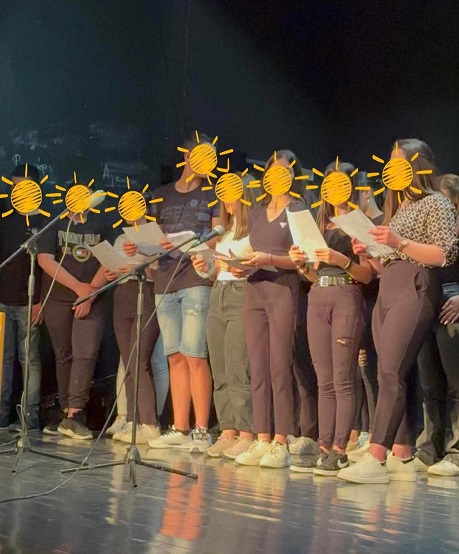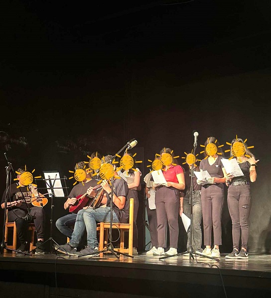 Στο δεύτερο μέρος της εκδήλωσης, οι μαθήτριες της ομάδας νοηματικής του σχολείου μας παρουσίασαν το τραγούδι «Είσαι εσύ ο άνθρωπός μου» σε μια απόδοση στην ελληνική νοηματική γλώσσα.