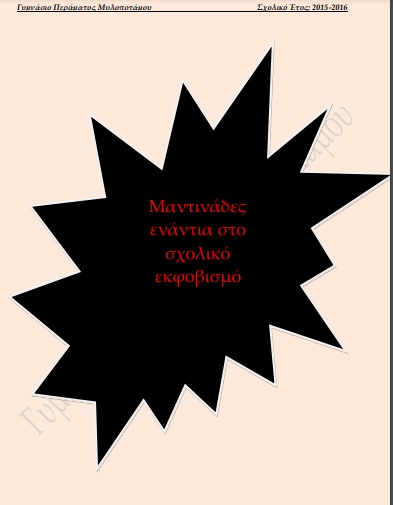 Αυτή τη Σχολική Χρονιά η Ομάδα Δράσης Πρόληψης κατά του Σχολικού Εκφοβισμού με τη συνεργασία των Μεσιτών διοργάνωσε διαγωνισμό για την καλύτερη μαντινάδα κατά του σχολικού εκφοβισμού.