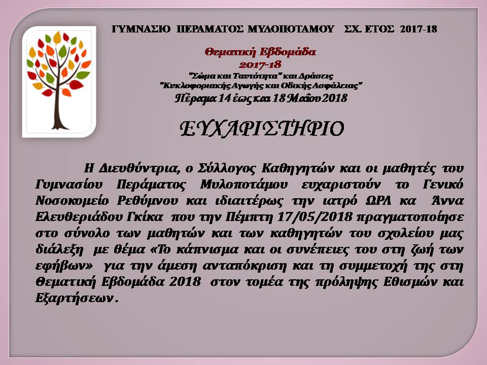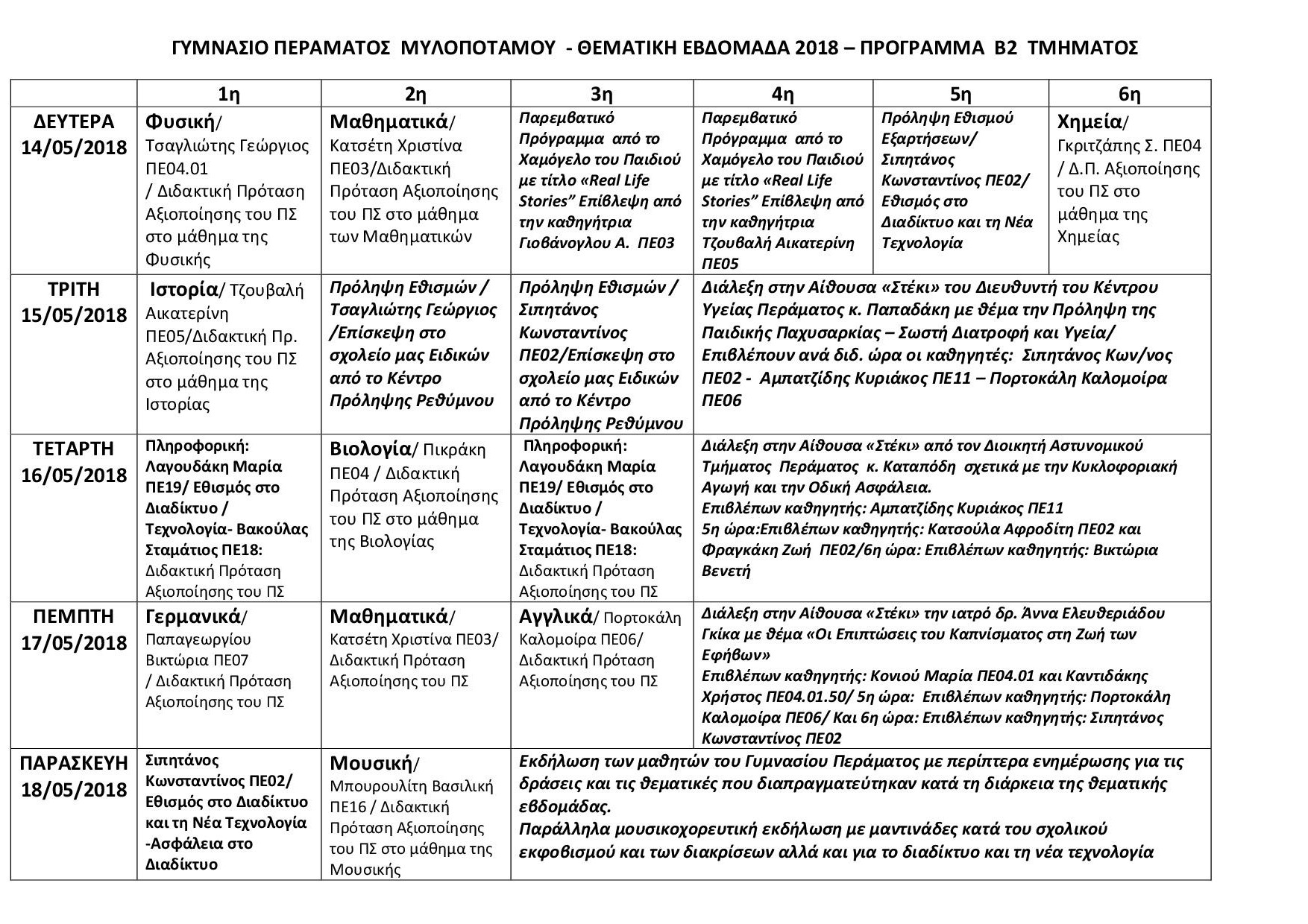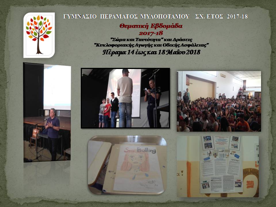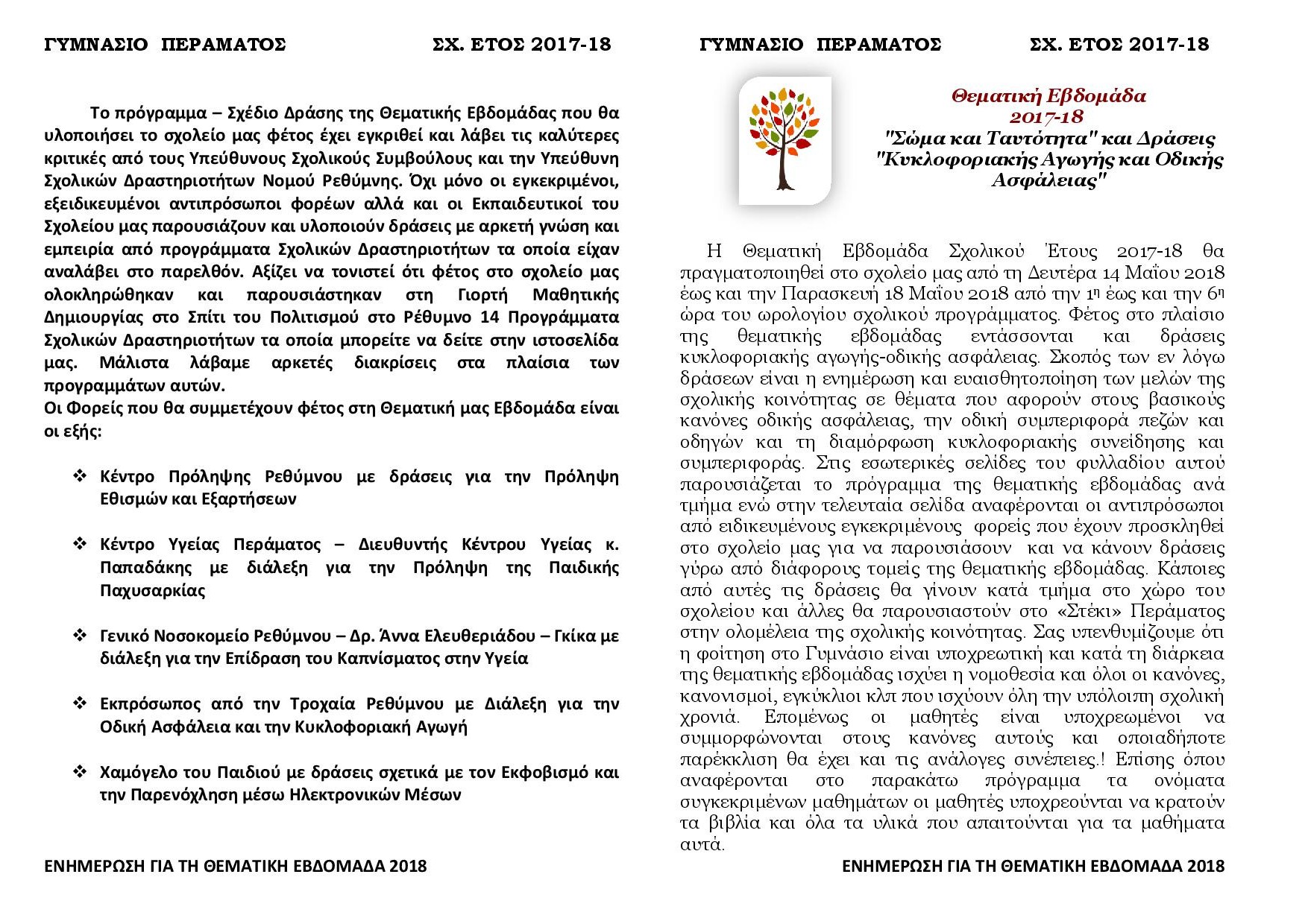 Με μεγάλη επιτυχία ολοκληρώθηκε η πραγματοποίηση της Θεματικής Εβδομάδας 2018 στο Γυμνάσιο Περάματος Μυλοποτάμου Ρεθύμνου.