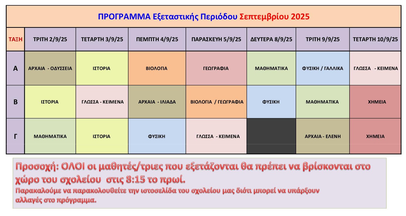 ΠΡΟΓΡΑΜΜΑ ΕΞΕΤΑΣΕΩΝ ΣΕΠΤΕΜΒΡΙΟΥ 2025