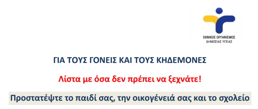 Οδηγίες για Γονείς από το Υπουργείο Παιδείας και τον ΕΟΔΥ