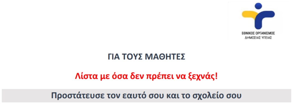 Οδηγίες για Μαθητές από το Υπουργείο Παιδείας και τον ΕΟΔΥ